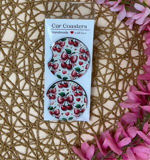 Elevate your car's interior with our coquette car coaster set. These soft, easy-to-clean coasters protect your cup holders while adding a touch of style with their beautiful prints. Transform your driving experience with this set of 2 practical yet fashionable accessory.
