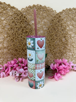 Skinny tumbler holds 20 oz of hot or cold drinks.