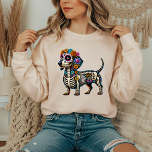 Stay cozy and stylish with the dachshund alebrije Crewneck, crafted from a soft 50/50 cotton-poly blend for lasting comfort. Elevate your wardrobe with this versatile, must-have piece.