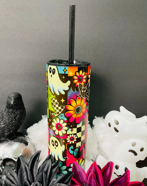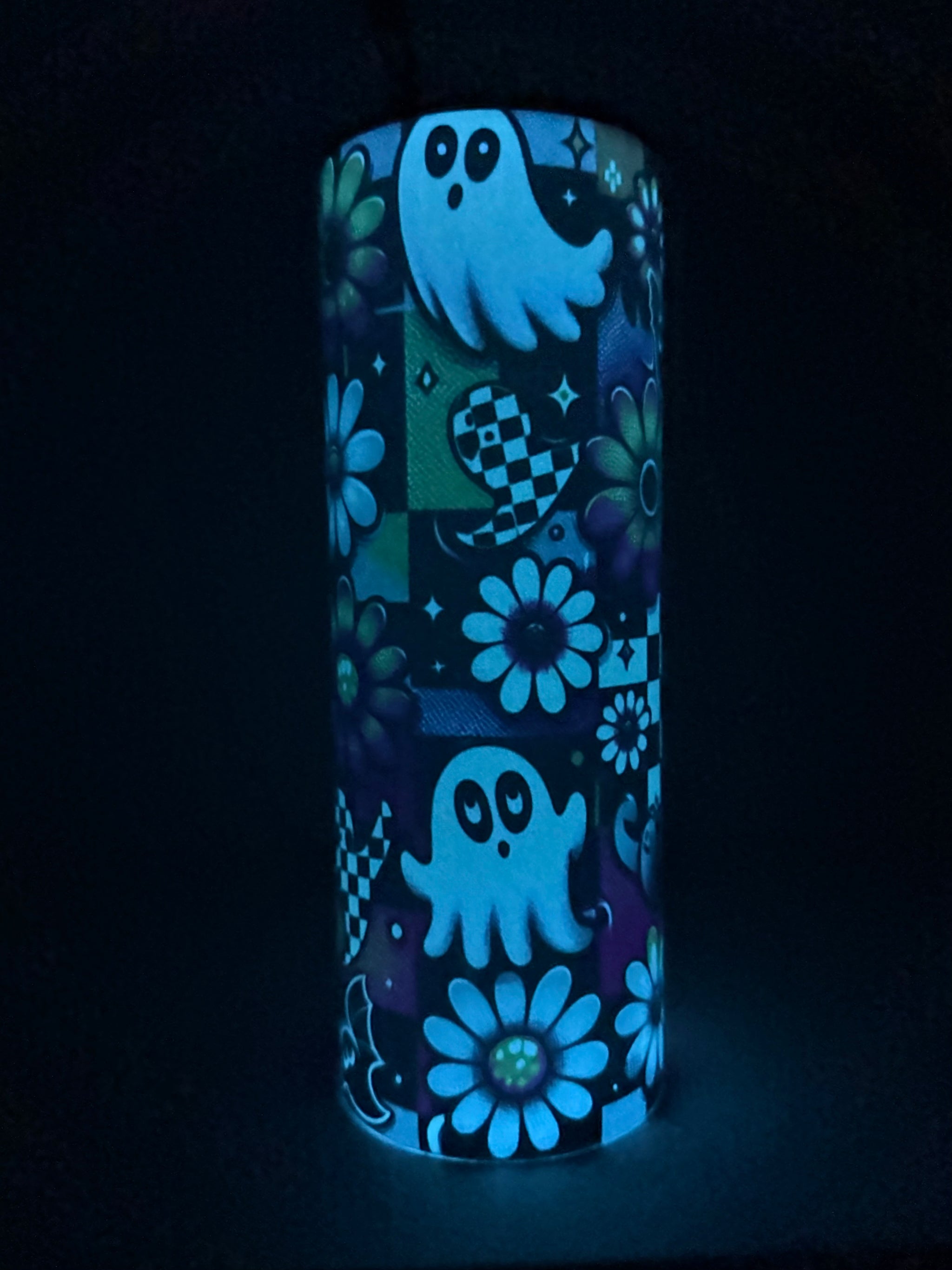 Glow in the dark Skinny tumbler holds 20 oz of hot or cold drinks.
