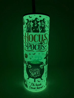 Glow in the dark Skinny tumbler holds 20 oz of hot or cold drinks.