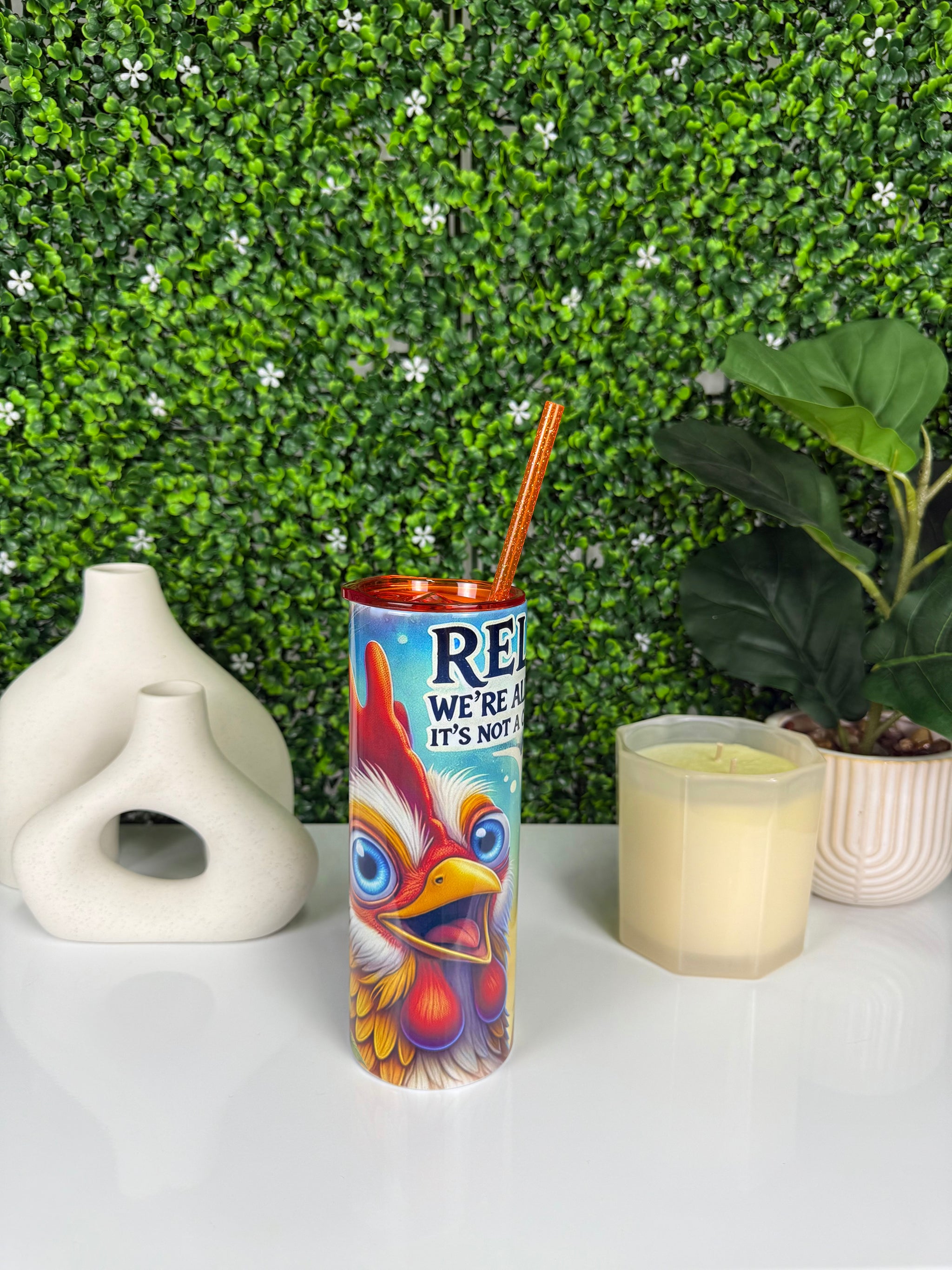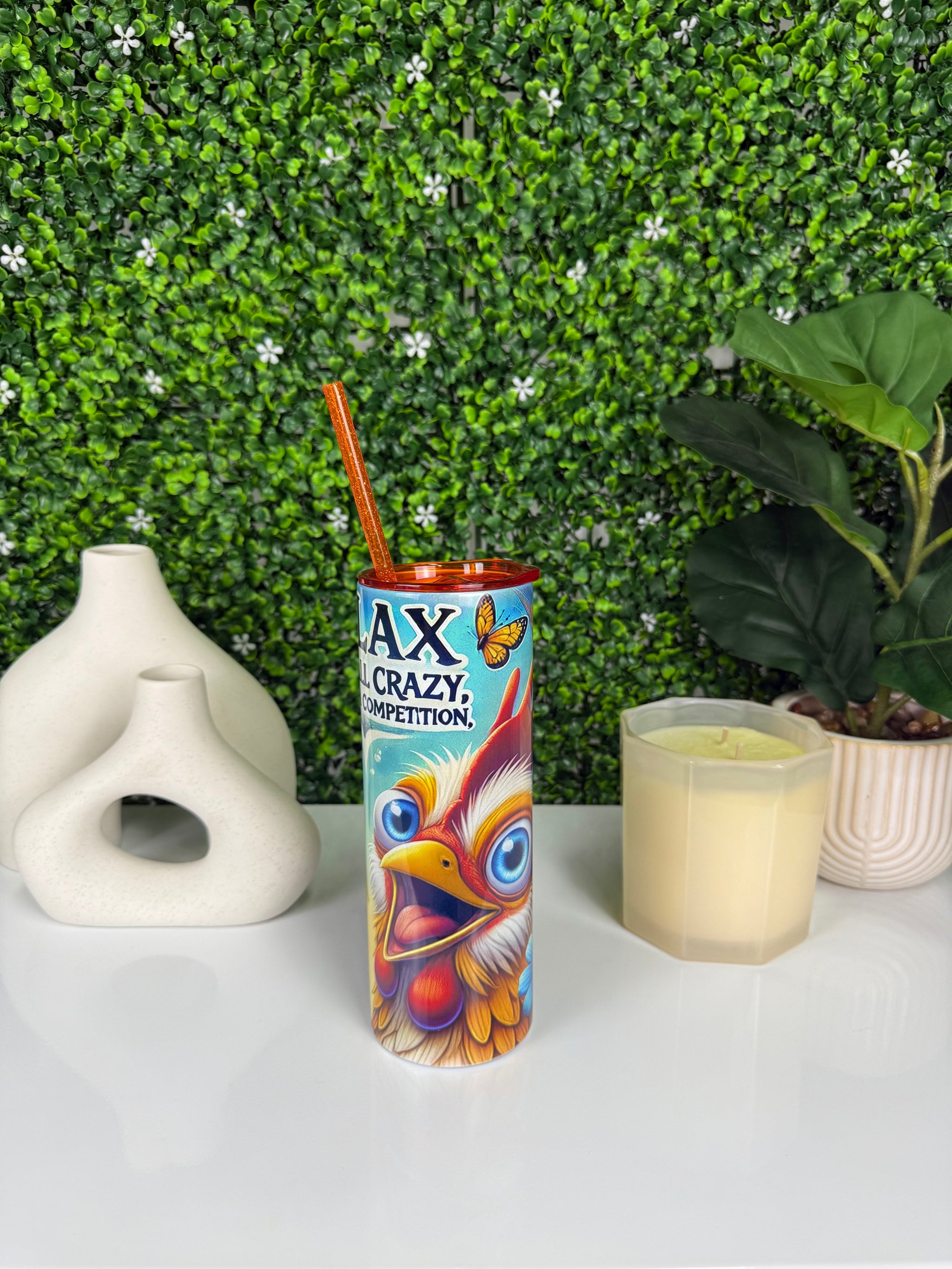 Skinny tumbler holds 20 oz of hot or cold drinks.