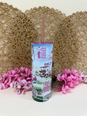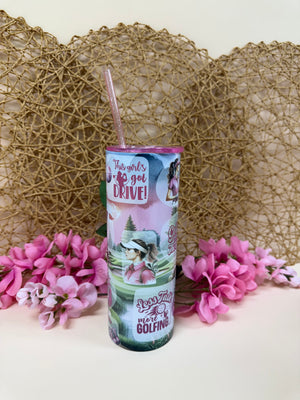 Skinny tumbler holds 20 oz of hot or cold drinks.