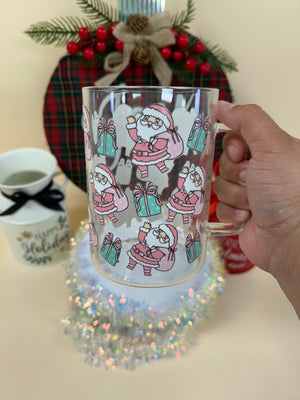 Celebrate the festive season with a unique twist using the Santa Pink Glass Mug. Combining the charm of Christmas with soft pink and pastel hues, this mug is perfect for those who want to add a touch of warmth and style to their holiday routine. Ideal for sipping hot cocoa, coffee, or tea, its elegant glass design enhances every sip, making your holiday moments even more special. Whether as a festive gift or a personal treat, this mug brings joy and color to your celebrations in a subtle yet delightful way.