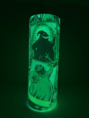 Glow in the dark Skinny tumbler holds 20 oz of hot or cold drinks.